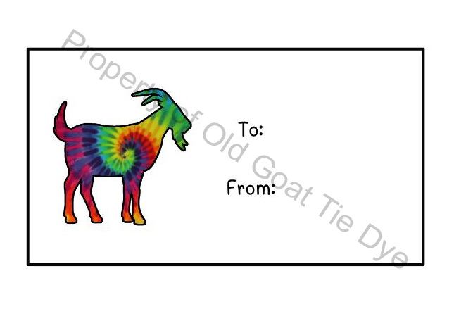 To the left is the Old Goat Tie Dye logo, while the right has plenty of room for a To: and From:.